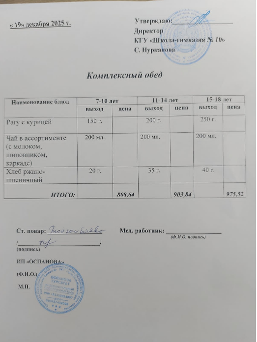 19 Декабрьға ас мәзірі/ меню на 19 декабря » Коммунальное государственное учреждение "Школа-гимназия №10" ОО по г. Усть-Каменогорску УО ВКО