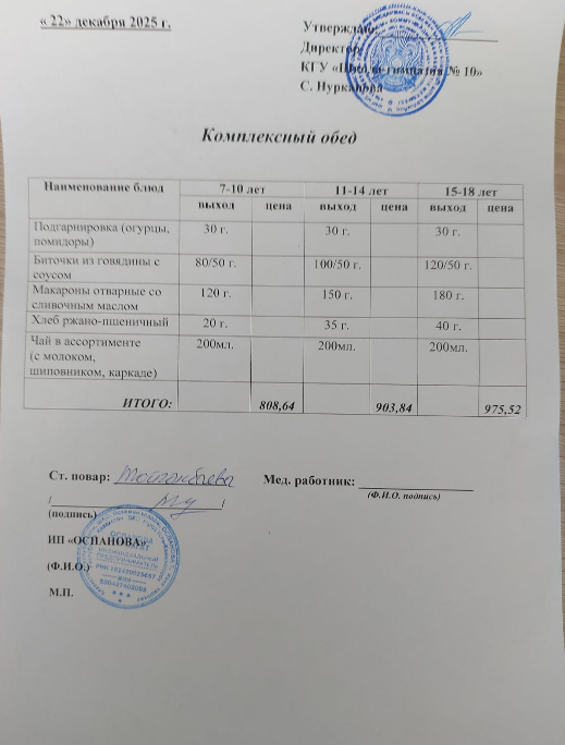 22 Декабрьға ас мәзірі/ меню на 22 декабря » Коммунальное государственное учреждение "Школа-гимназия №10" ОО по г. Усть-Каменогорску УО ВКО