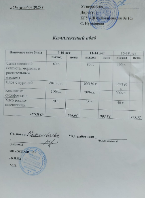 23 Декабрьға ас мәзірі/ меню на 23 декабря » Коммунальное государственное учреждение "Школа-гимназия №10" ОО по г. Усть-Каменогорску УО ВКО