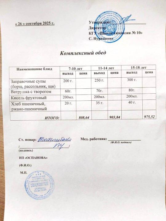 26 қыркүйекке ас мәзірі / Меню на 26 сентября » Коммунальное государственное учреждение "Школа-гимназия №10" ОО по г. Усть-Каменогорску УО ВКО