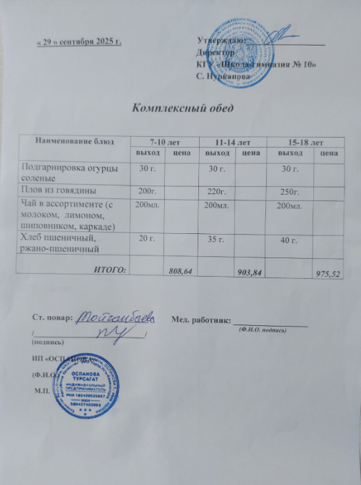 29 қыркүйекке ас мәзірі / Меню на 29 сентября » Коммунальное государственное учреждение "Школа-гимназия №10" ОО по г. Усть-Каменогорску УО ВКО