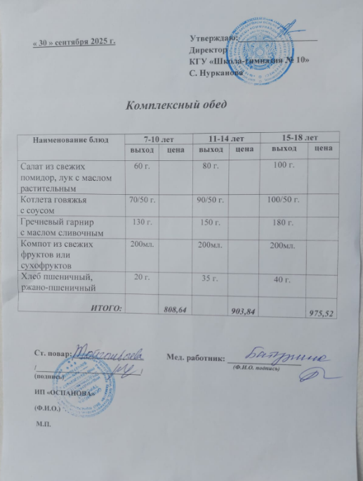 30 қыркүйекке ас мәзірі / Меню на 30 сентября » Коммунальное государственное учреждение "Школа-гимназия №10" ОО по г. Усть-Каменогорску УО ВКО
