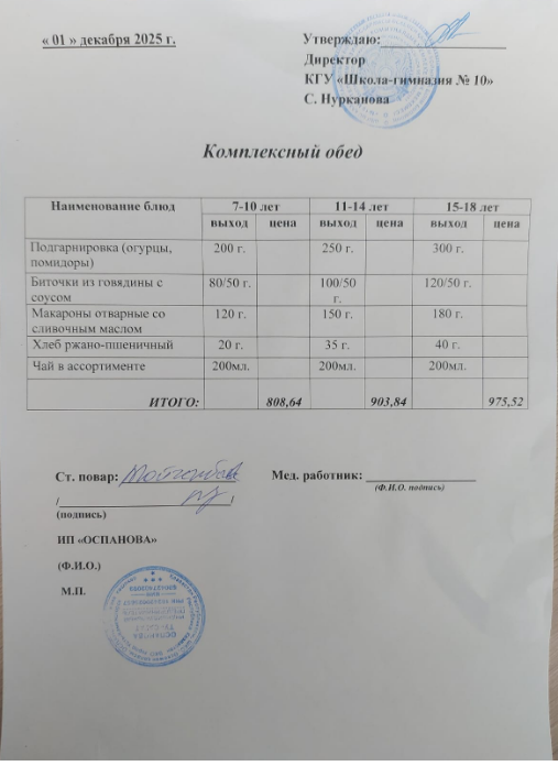 1 желтоқсанға ас мәзірі/ меню на 1 декабря » Коммунальное государственное учреждение "Школа-гимназия №10" ОО по г. Усть-Каменогорску УО ВКО