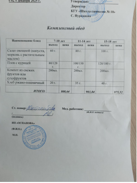 2 желтоқсанға ас мәзірі/ меню на 2 декабря » Коммунальное государственное учреждение "Школа-гимназия №10" ОО по г. Усть-Каменогорску УО ВКО