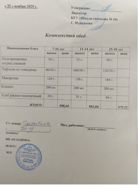 25 қарашаға ас мәзірі/ меню на 25 ноября » Коммунальное государственное учреждение "Школа-гимназия №10" ОО по г. Усть-Каменогорску УО ВКО